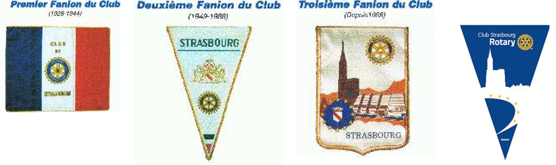 Le Premier fanion (1928-1944), modèle unique et original, représente le drapeau français, frappé dans le rectangle blanc de la roue rotarienne et de l'inscription CLUB DE STRASBOURG. Il a vécu une aventure peu banale.