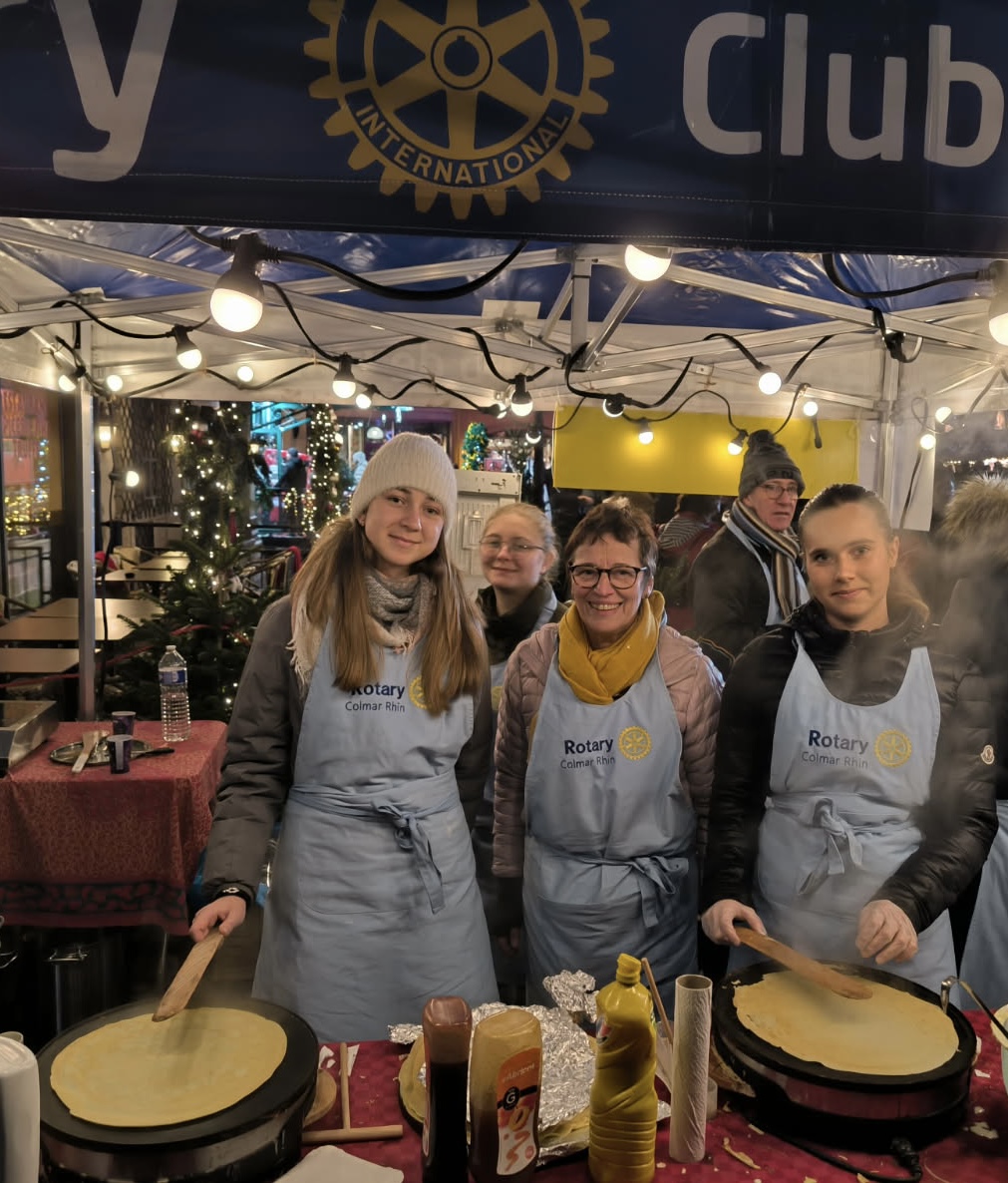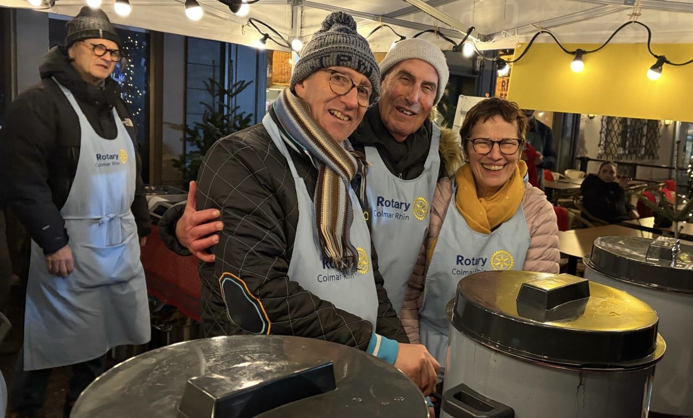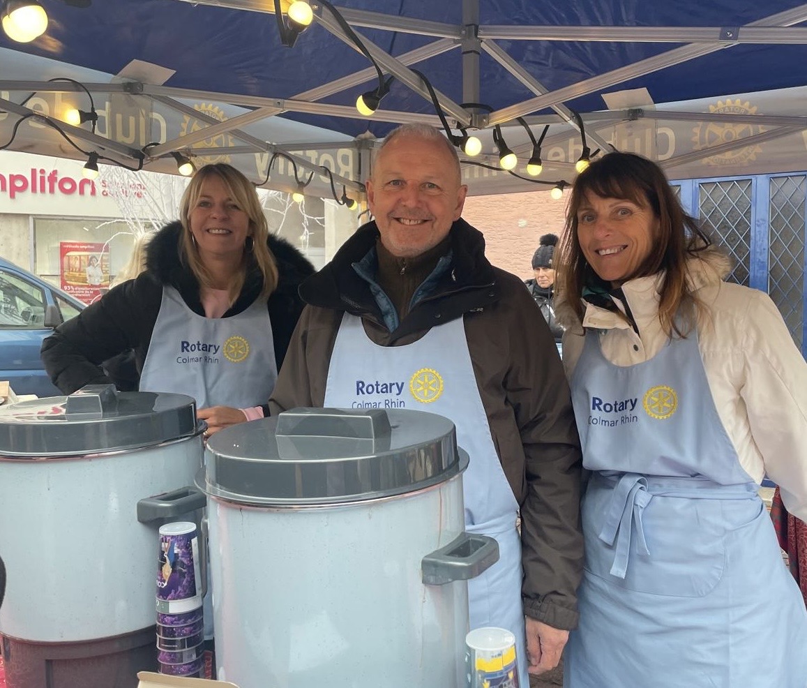 À l’occasion du marché de Noël, les membres de notre club, accompagnés des étudiants d’échange, des ROTEX et des membres du Rotaract, se sont pleinement investis pendant un weekend pour une belle action de solidarité autour de la vente de vin chaud, jus de pomme chaud, crêpes et autres gourmandises.