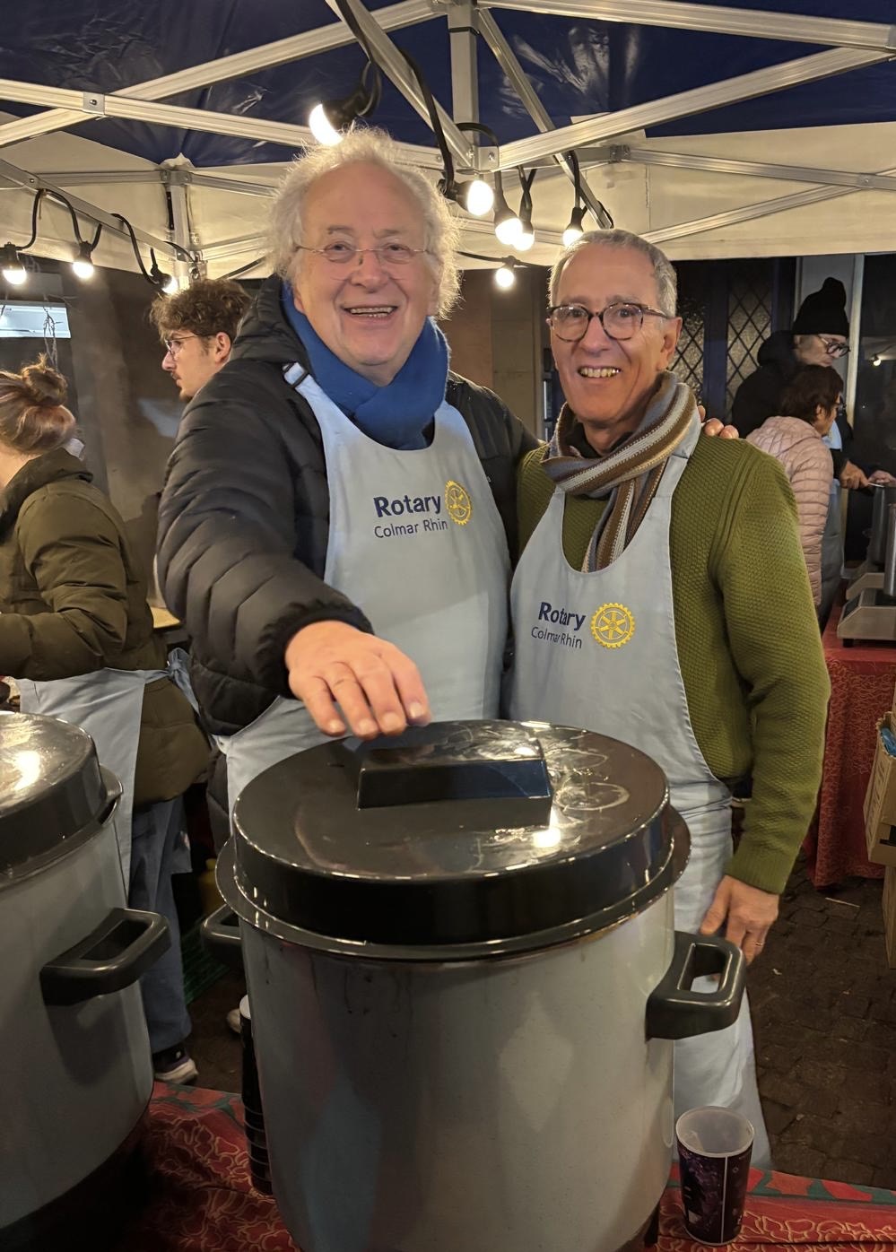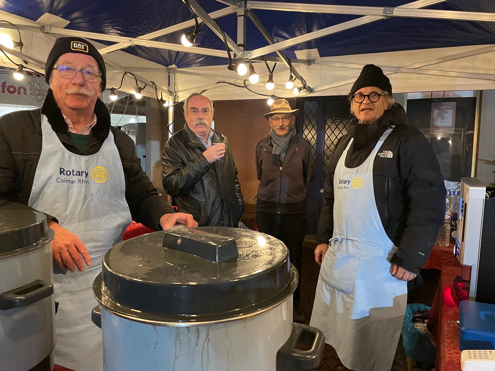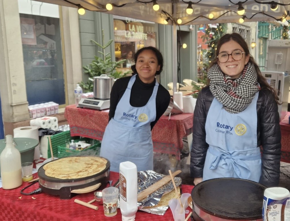 À l’occasion du marché de Noël, les membres de notre club, accompagnés des étudiants d’échange, des ROTEX et des membres du Rotaract, se sont pleinement investis pendant un weekend pour une belle action de solidarité autour de la vente de vin chaud, jus de pomme chaud, crêpes et autres gourmandises.