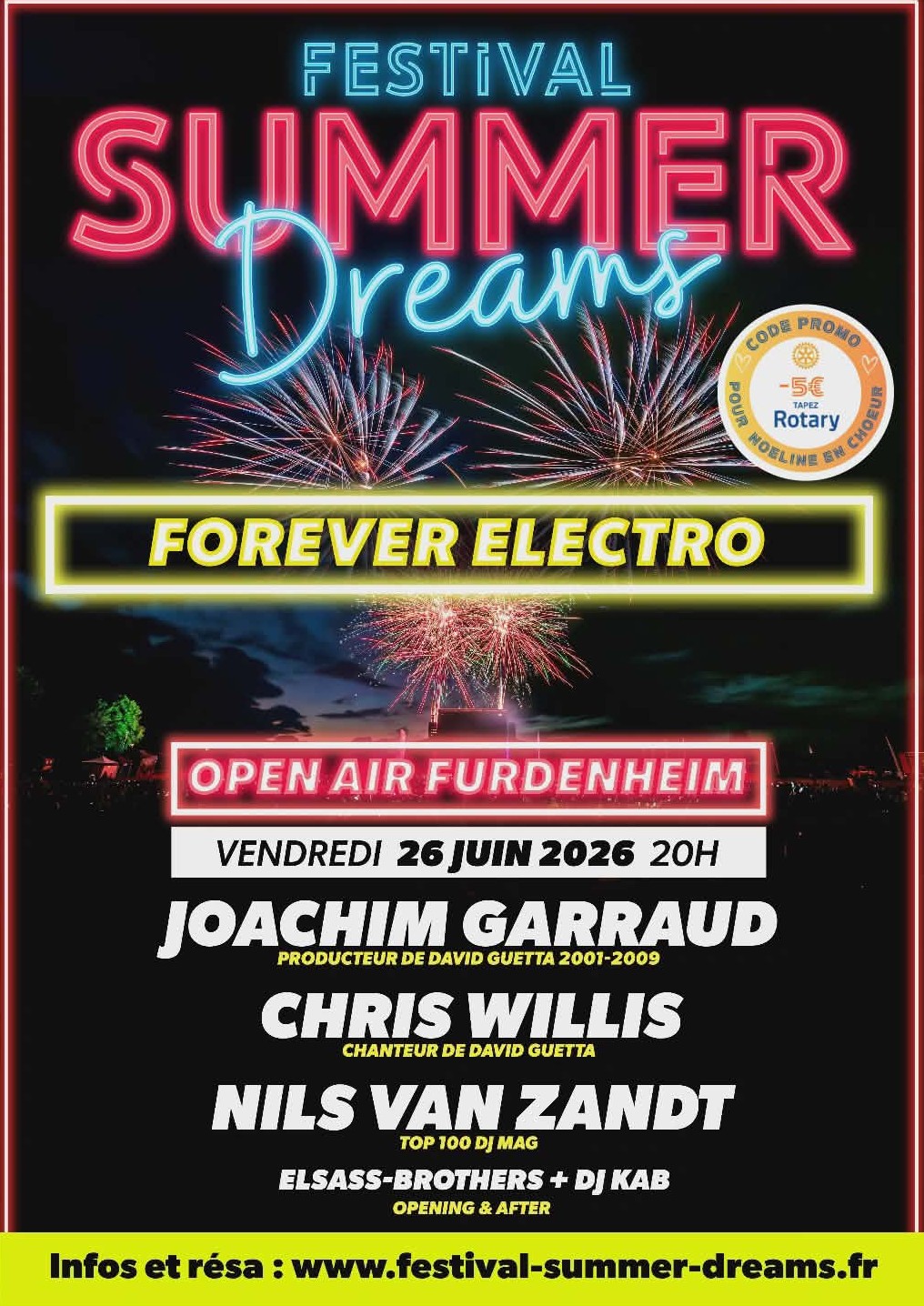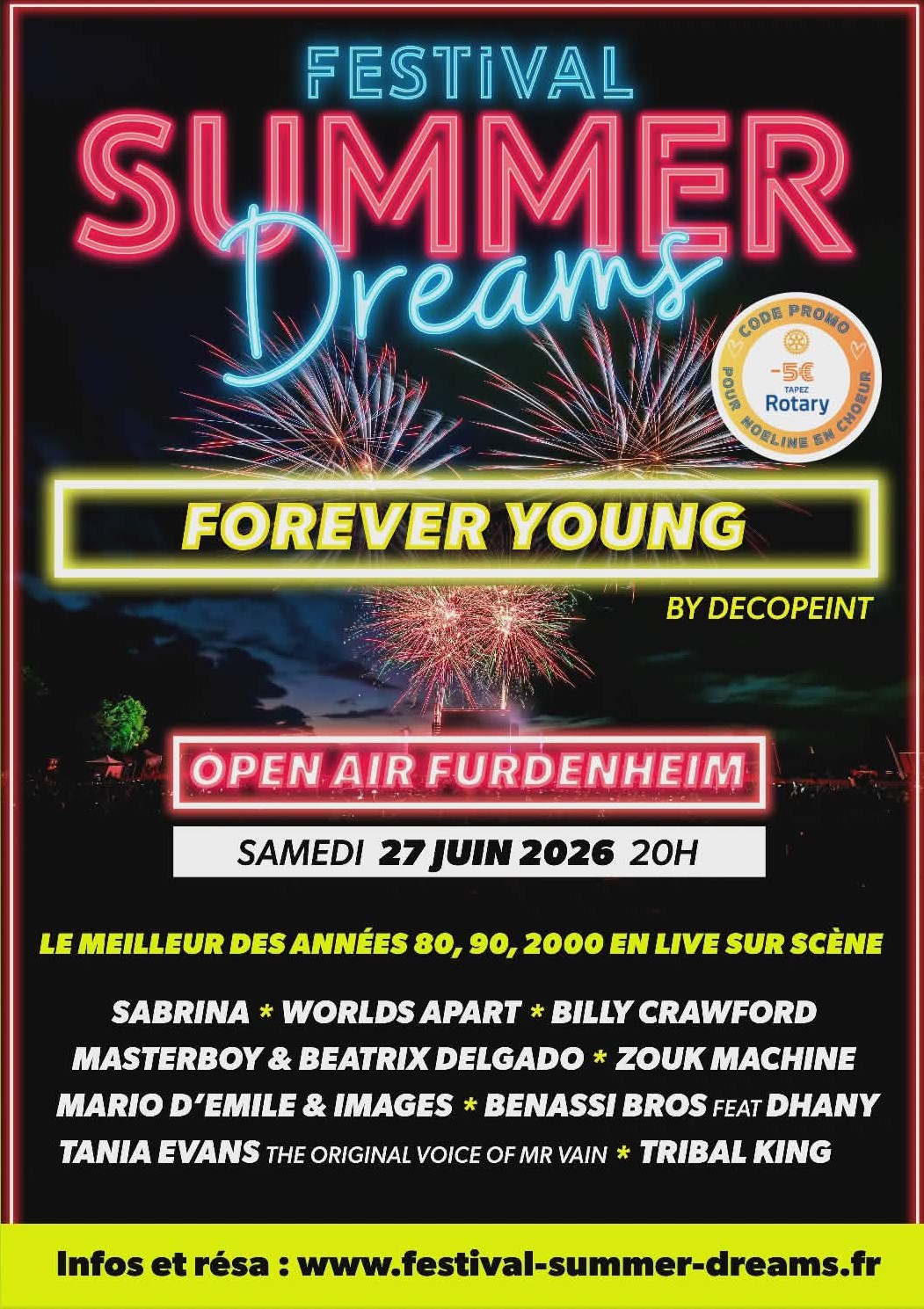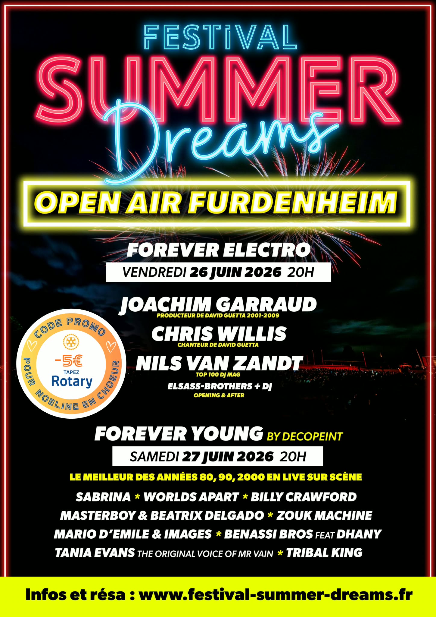 En participant au FESTIVAL SUMMER DREAMS avec le code ROTARY, vous bénéficiez d’un tarif préférentiel et vous soutenez nos actions.
