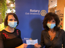 Mercredi 16 décembre 2020, remise du chèque de 1500 € par Marie Josée Pfirsch, présidente du Rotary Club Strasbourg (à droite) à Mme Fanny Fuchs, dirigeante associée du restaurant Il Girasole.